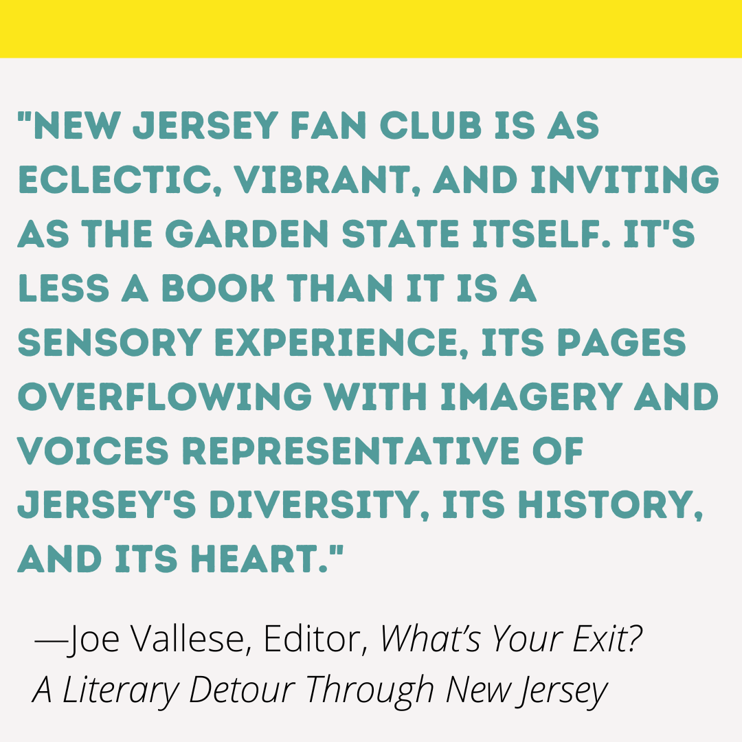 New Jersey Fan Club: Artists and Writers Celebrate the Garden State is an eclectic anthology featuring personal essays, interviews, and comics from a broad group of established and emerging writers and artists who have something to say about New Jersey. It offers a multifaceted look at the state’s history and significance, told through narrative nonfiction, photographs, and illustrations.